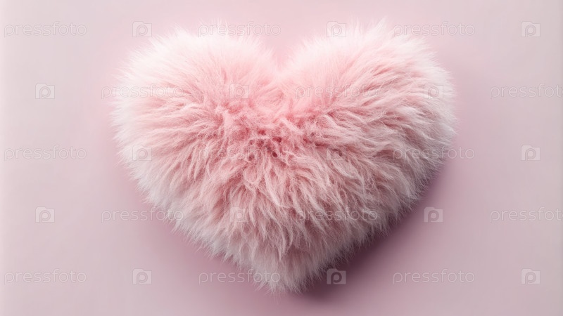 Пушистая розовая сердечная подушка в форме сердца на розовом фоне