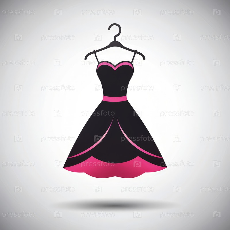 Черное платье с розовой отделкой висит на вешалке