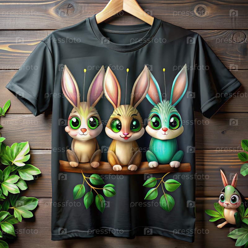 Мультипликационные кролики, сидящие на ветке Дизайн футболки