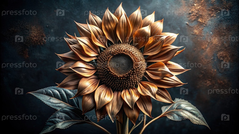 Однометаллический подсолнечник с бронзовыми лепестками на темном фоне