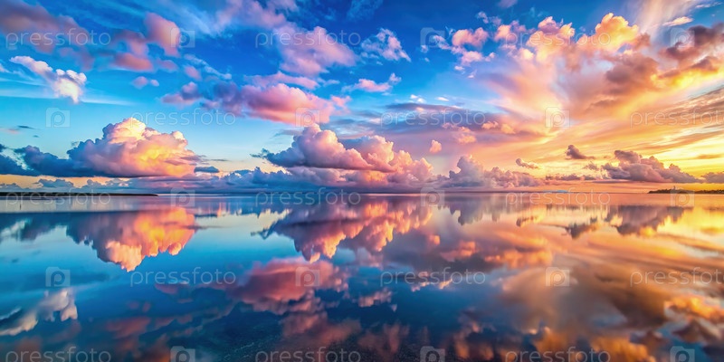 Спокойное закатное небо, отражающееся в спокойных водах