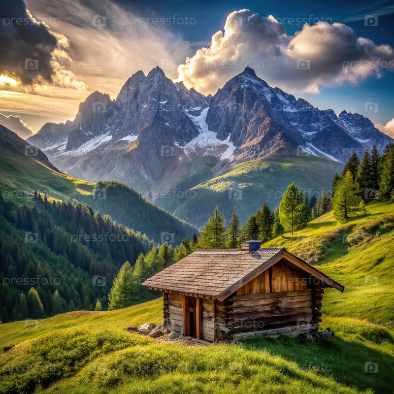 Одинокая горная хижина на закате