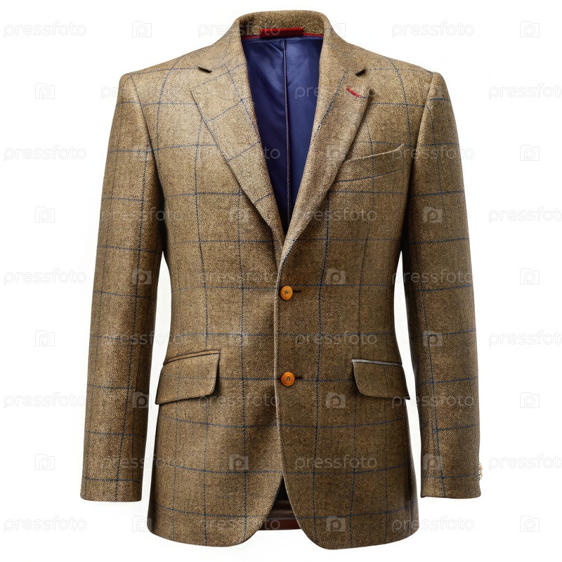 Браун Твид Блейзер с синими и красными акцентами, изолированным на белом фоне