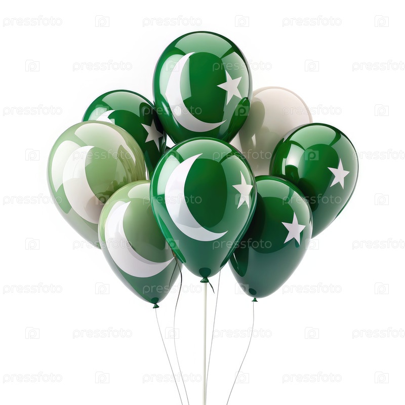 Зелено-белые воздушные шары, празднующие День независимости Пакистана