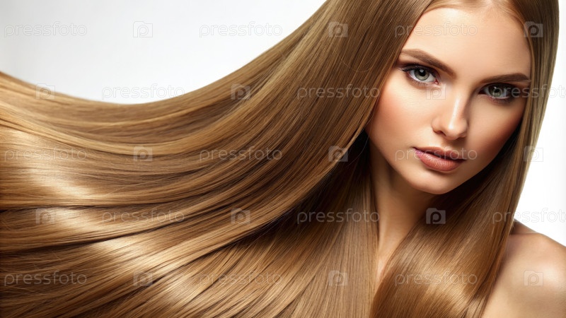 Ближайшее изображение здоровых, прямых блондинских волос женщины на белом фоне