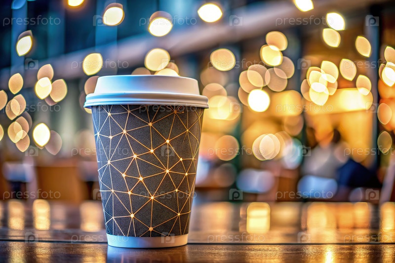 Мокет кофейной чашки с геометрическим дизайном на деревянном столе в кафе. генеративный ИИ