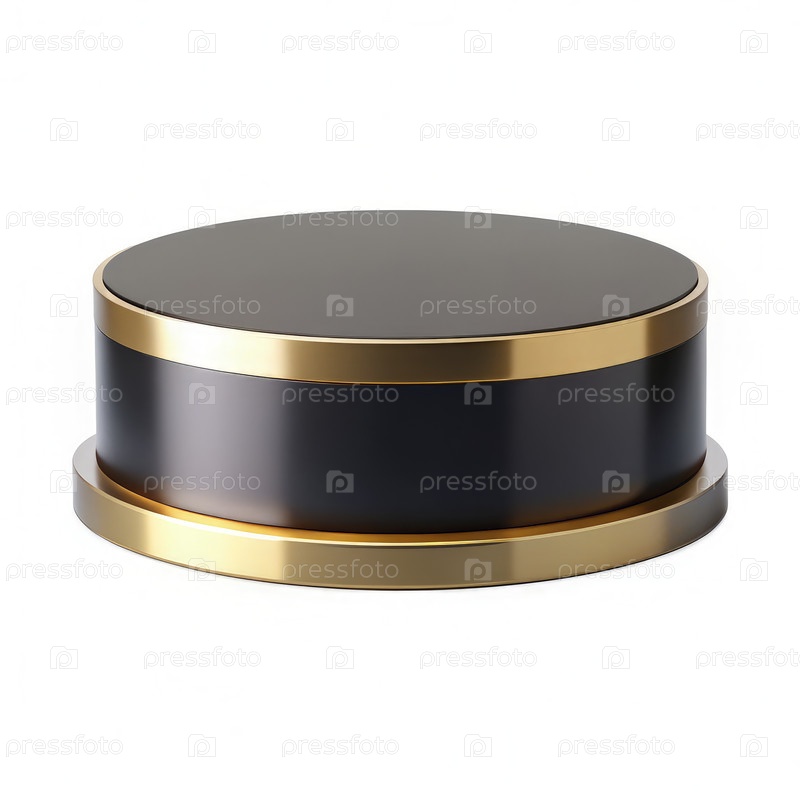 Элегантный черно-золотой круглый подиум Пьедестал на белом фоне