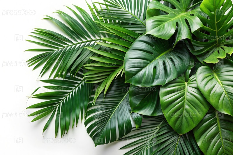 Густозеленые тропические листья, изолированные на белом фоне