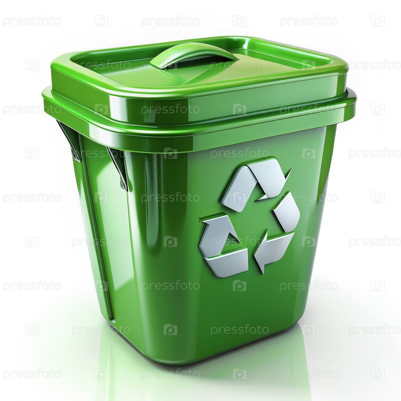 Зеленый корзину с символом переработки на белом фоне