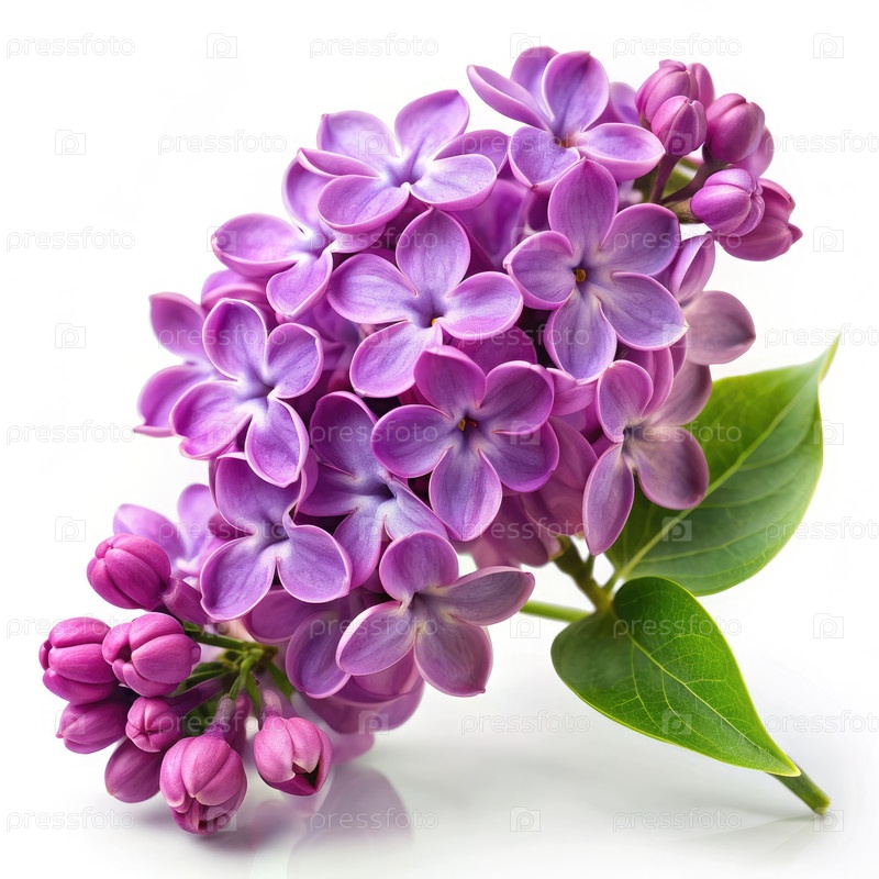 Ветвь лиловых цветов на белом фоне