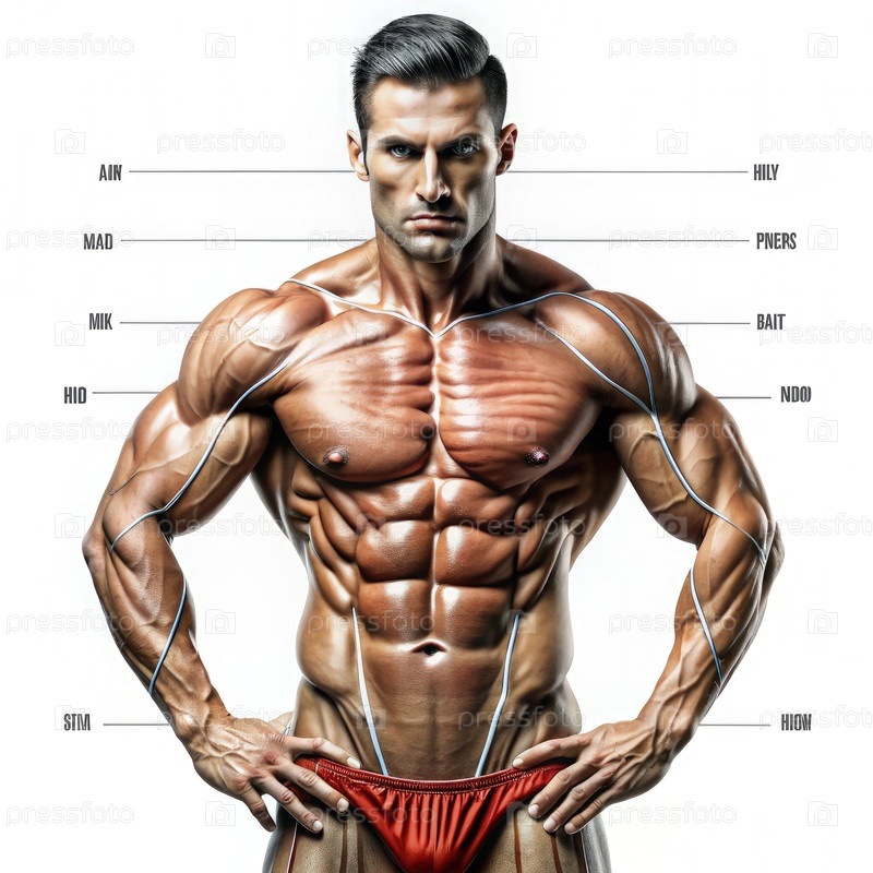 Бодибилдер позирует с подробной иллюстрацией анатомии мышечной системы. генеративный ИИ мужчина