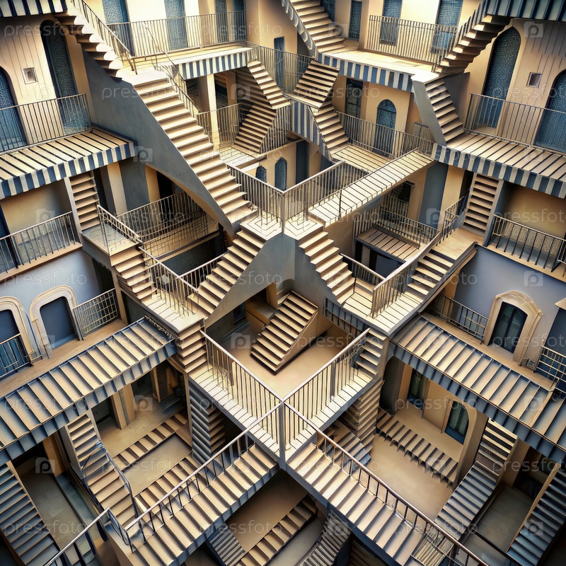 Иллюзия невозможной лестницы, вдохновленная Эшером. генеративный AI