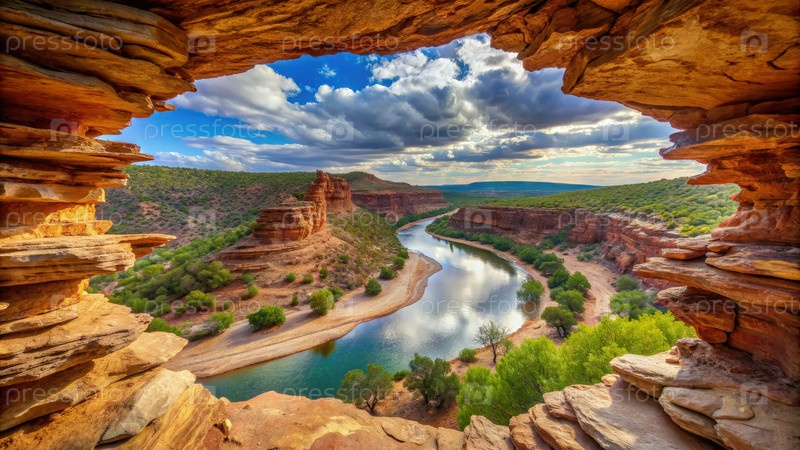 Вид из окна природы на реку Мурчисон в национальном парке Калбарри, Западная Австралия