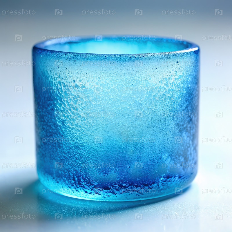 Мороженный голубой стеклянный сосуд для питья на белой поверхности