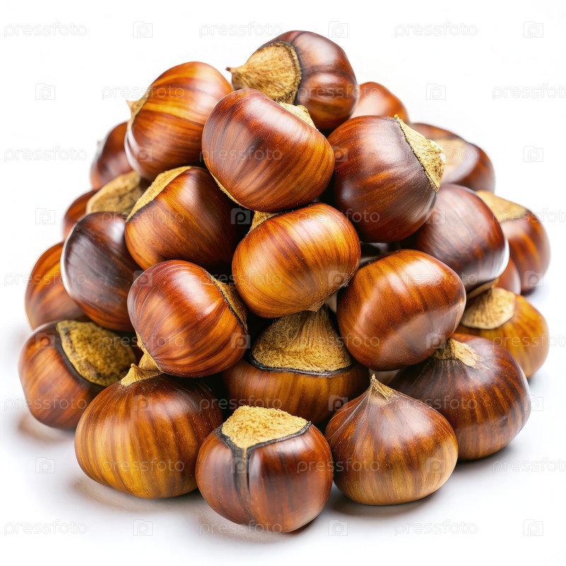 Куча жаренных каштанов, изолированных на белом фоне