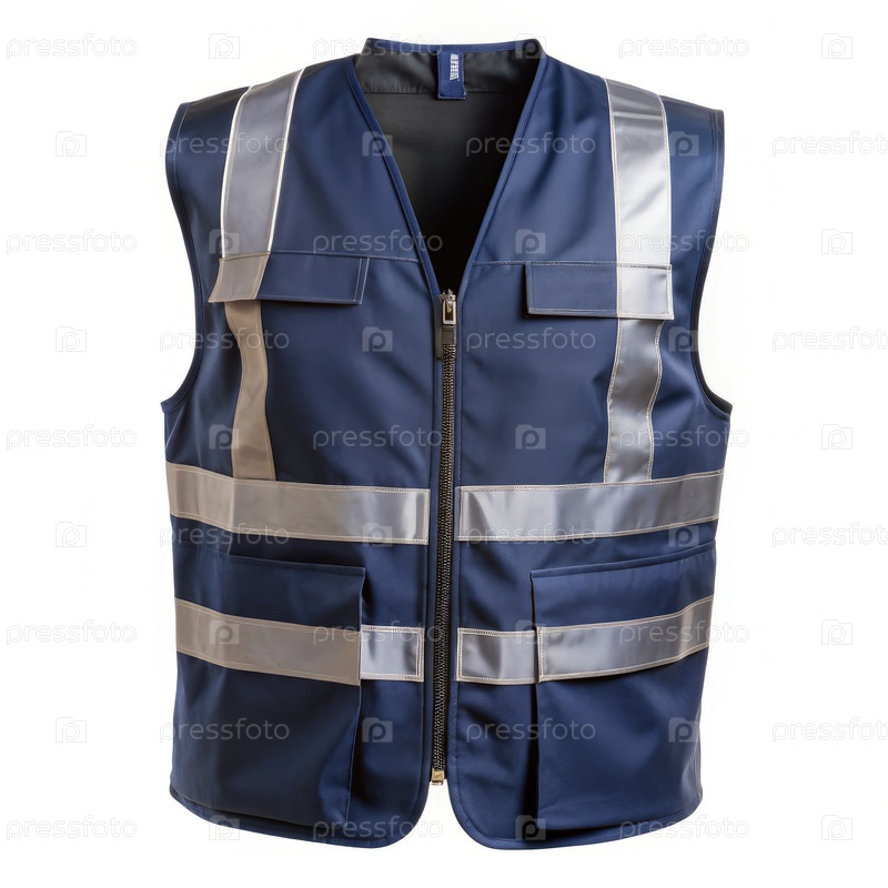 Темно-синий защитный жилет с отражающими полосками. генеративная ИИ