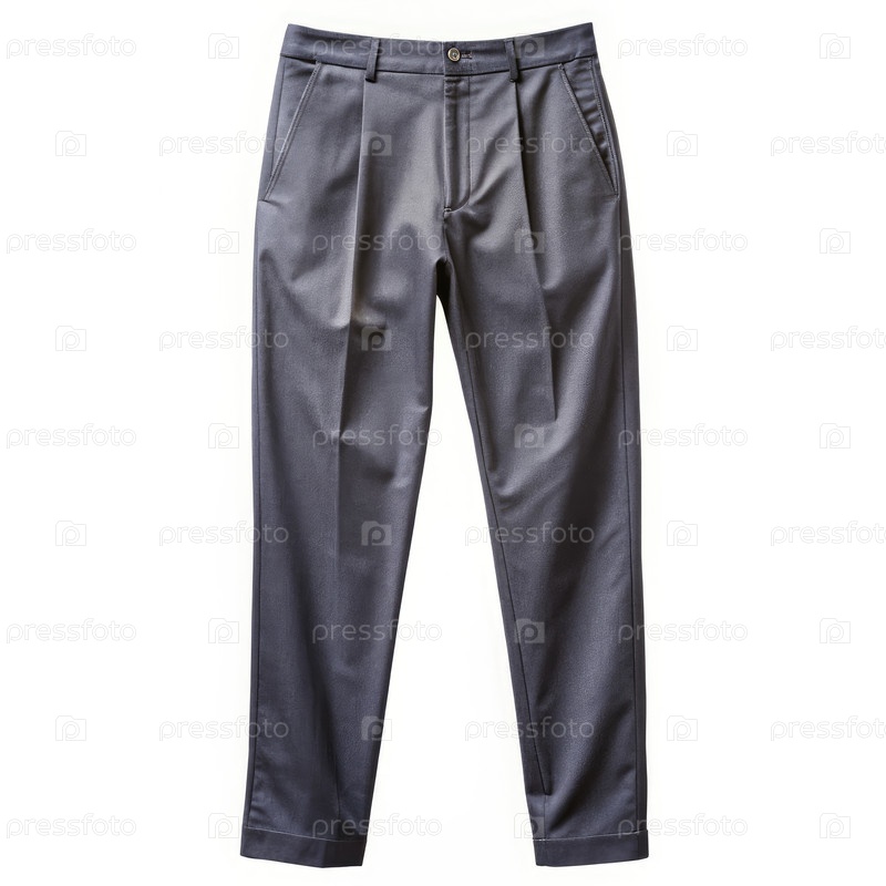 Серые полированные брюки с передними карманами, изолированными на белом фоне