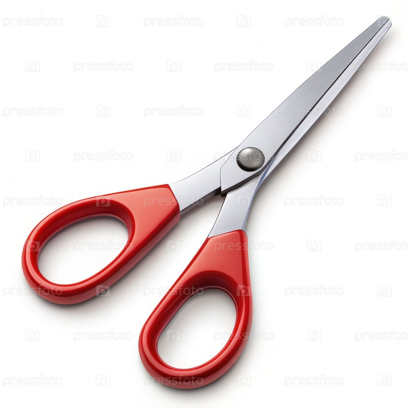 Ножницы с красной ручкой, изолированные на белом фоне