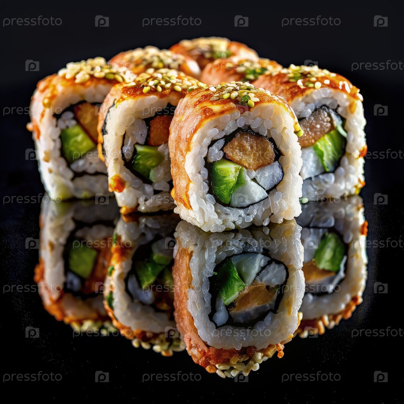 Осака Специальный рулон суши на черном фоне