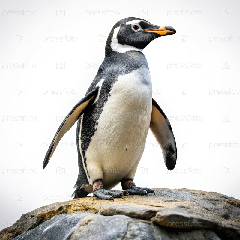 Одинокий пингвин Магеллана, стоящий на скале на белом фоне