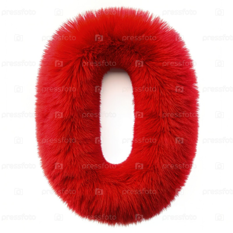 Красный пушистый номер ноль на белом фоне