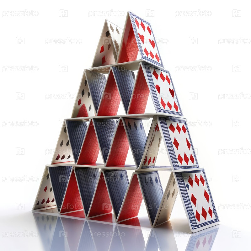 Неопределенный Дом из карт Структура, построенная на белом фоне