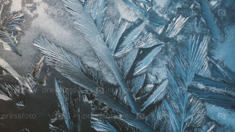 Абстрактная ледяная поверхность с кристаллизированными узорами перьев и резкими фактурами мороза, идеально подходит для зимних макро, холодной погоды и замороженных деталей