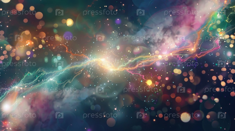 Абстрактный поток космической энергии с светящимися частицами и яркими световыми волнами, создавая футуристический научно-фантастический фон, вдохновленный пространством, движением и цифровым воображением