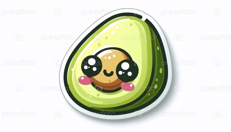 Милый стикер kawaii улыбающегося авокадо, Ai generated image