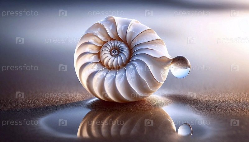 Раковина с каплей воды на песке, Ai generated image