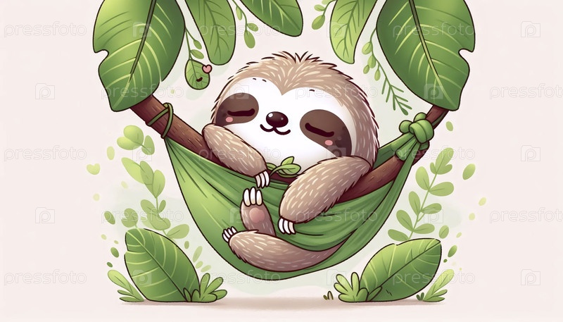 Кавайская сцена ленивца в гамаке, Ai generated image