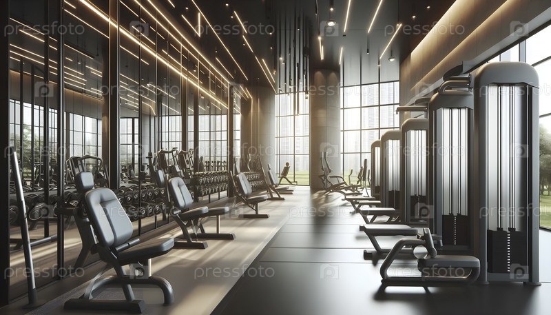Профессиональный интерьер тренажерного зала с оборудованием для тренировок, Ai created image
