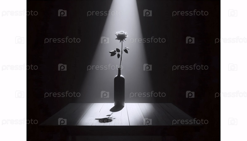 Киароскуро натюрморт увядающей розы в стеклянной вазе, освещенный одним лучом утреннего света, Ай создал изображение