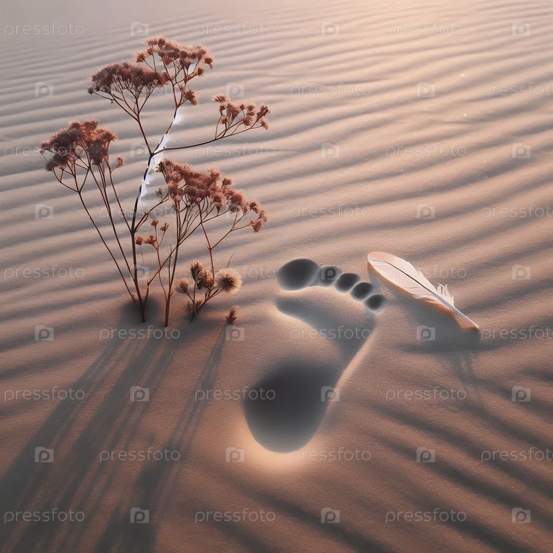 Единственный след на песчаной дорожке, Ai generated image