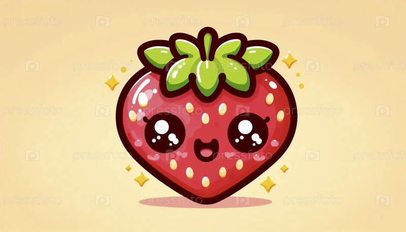 Милая клубника кавайи с веселым лицом, Ai generated image