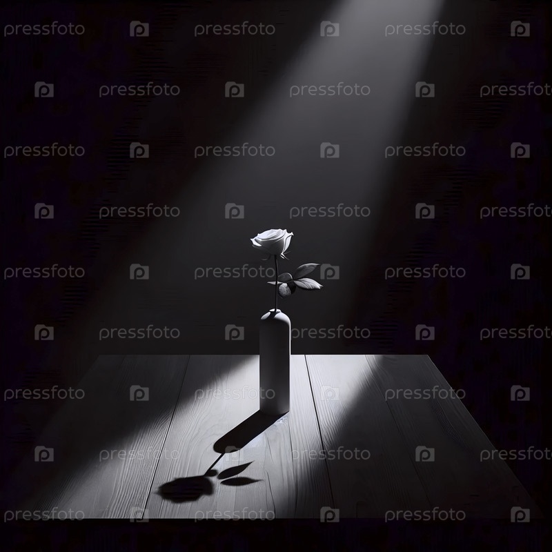 Киароскуро натюрморт увядающей розы в стеклянной вазе, освещенный одним лучом утреннего света, Ай создал изображение