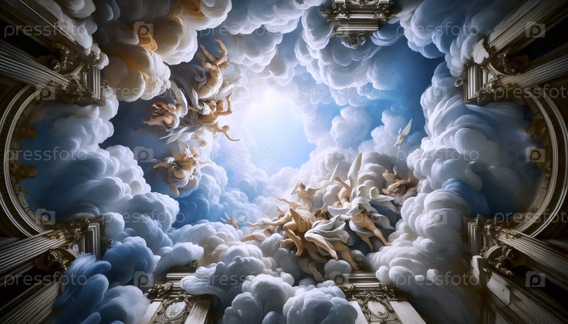 Детали фрески на потолке в стиле барокко с облаками и ангелами, Ай создала изображение
