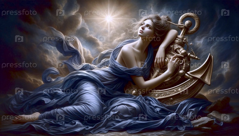 Аллегория Надежды с якорем, масло на холсте, Ai generated image