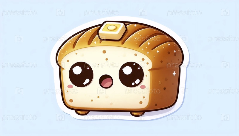 Милый стикер кавайи на удивленный хлеб, Ai generated image