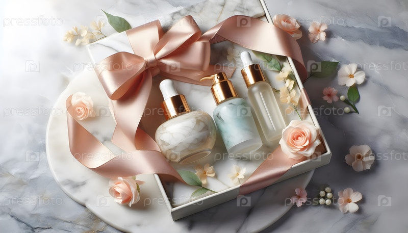 Подарочный набор для ухода за кожей, мраморная текстура, изображение создано с помощью Ai