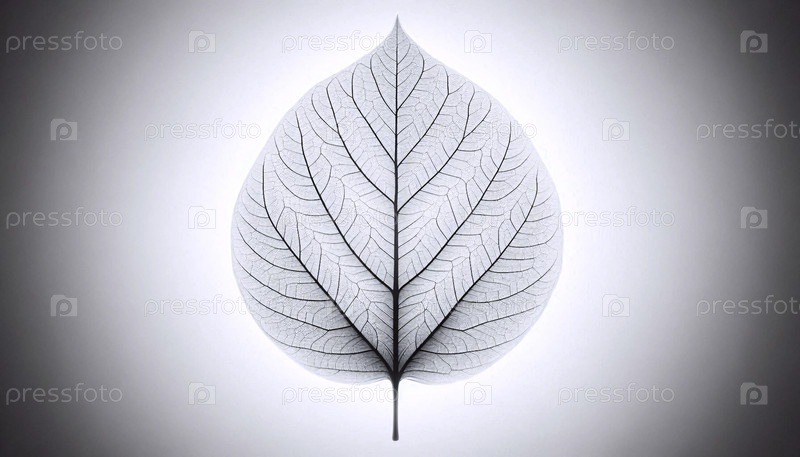 Один лист, подвешенный на чистом белом фоне с обратным освещением, чтобы показать каждую вену и клеточную структуру, Ai создал изображение