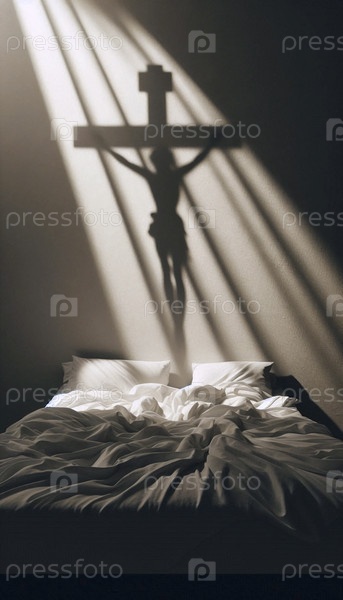 Тень распятия, выложенная на скрученных льнах, Ай создала изображение