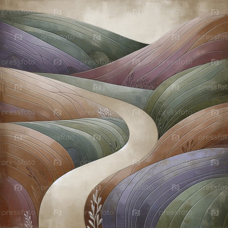 Извилистый путь через поля лаванды абстрактный, Ai generated image