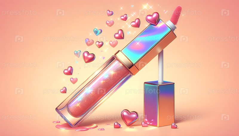 Глянцевая трубка, плавающие сердца, изображение создано с помощью Ai Lip