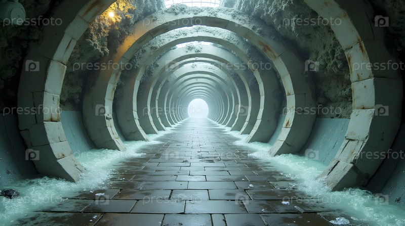 Подземные трубы отходов, перерабатывающие сортировочные боты, создаваемое искусственным интеллектом изображение