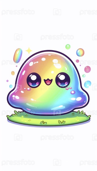 Простой кавайский персонаж радужной слизи, Ai generated image
