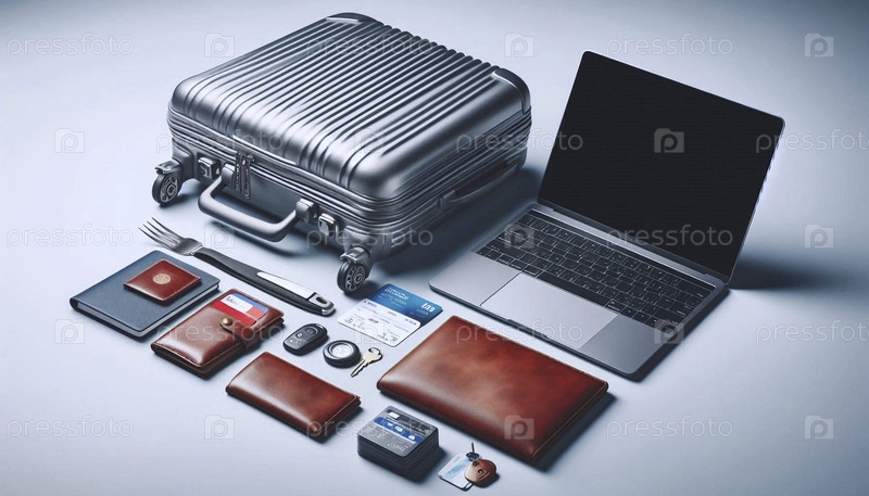 Товары для путешествий, включая багаж, паспорт и билеты на место назначения, Ai generated image