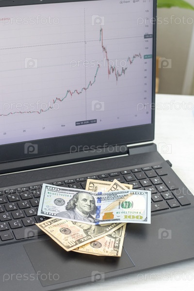 График свечей для сырой нефти на экране ноутбука, показывающий значительную волатильность после событий на Ближнем Востоке в марте 2026 года