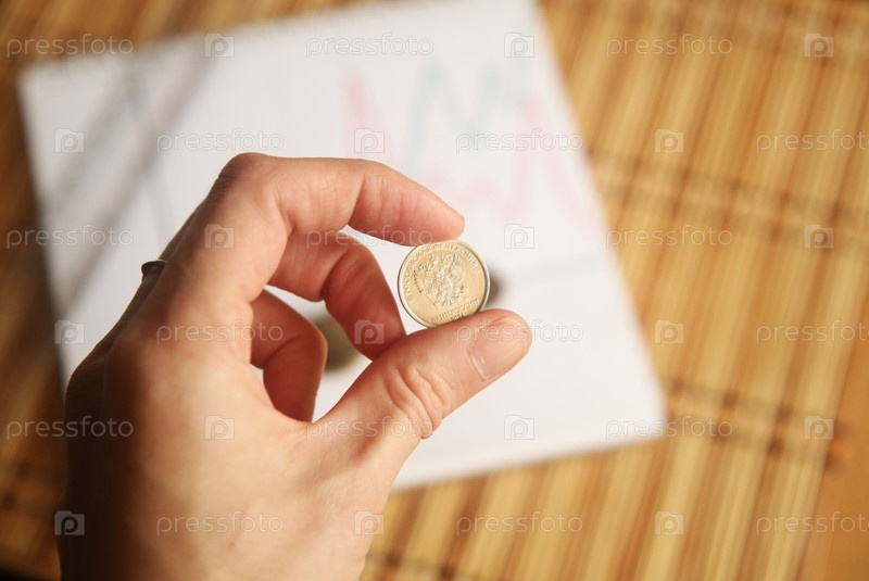 Рука с монетой крупным планом. Обвал рубля и кризис