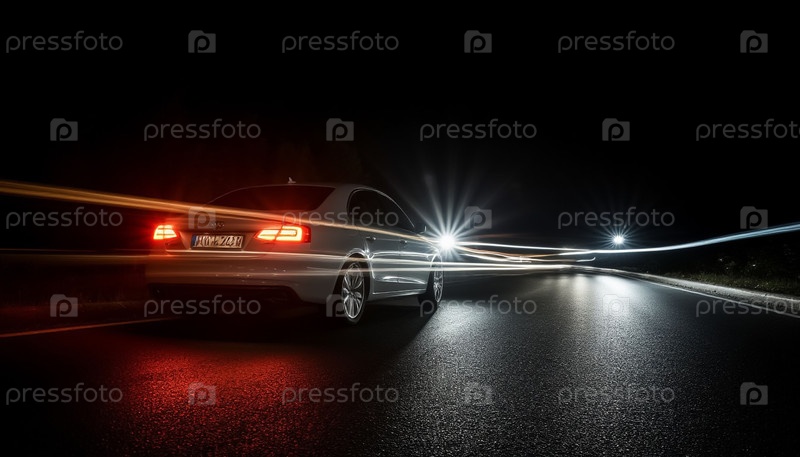 Автомобильный фары светит темный фон